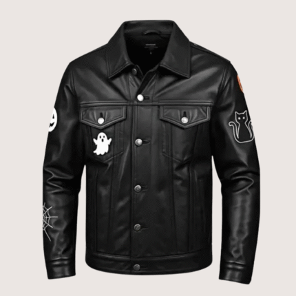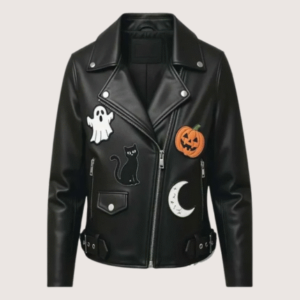 Handmade Christmas Leather Biker Jacket | Santa Embroidery Jacket
