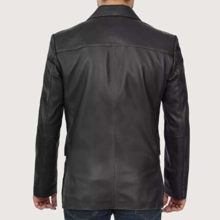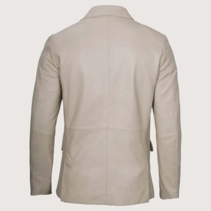 Mens Tan Outer Pocket Leather Blazer Jacket
