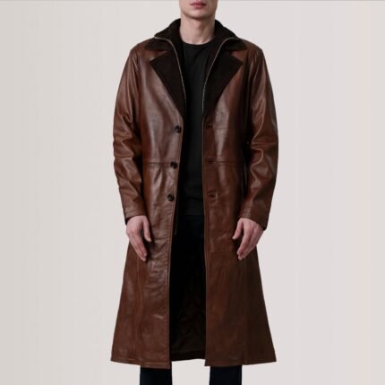 Brown Leather Duster Coat – Belted Coat