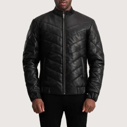 Norman Tan Hooded Bomber Leather Puffer Jacket