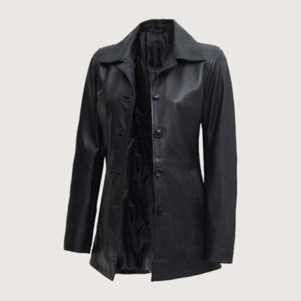 Alexis Black Single Breasted Leather Coat