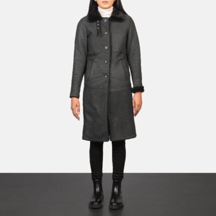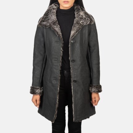 Alina Shearling Black Leather Coat