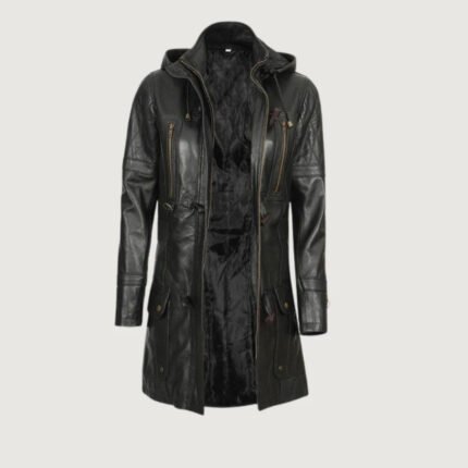 Moonlight Black Leather Trench Coat