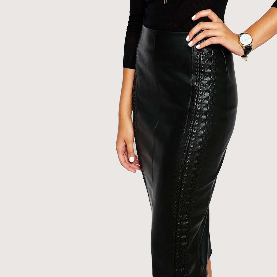 Classic Lambskin Leather Knee-Length Skirt