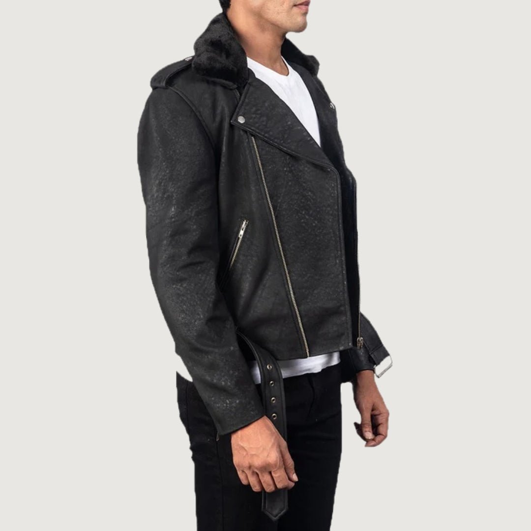 Furton Distressed Black Leather Biker Jacket
