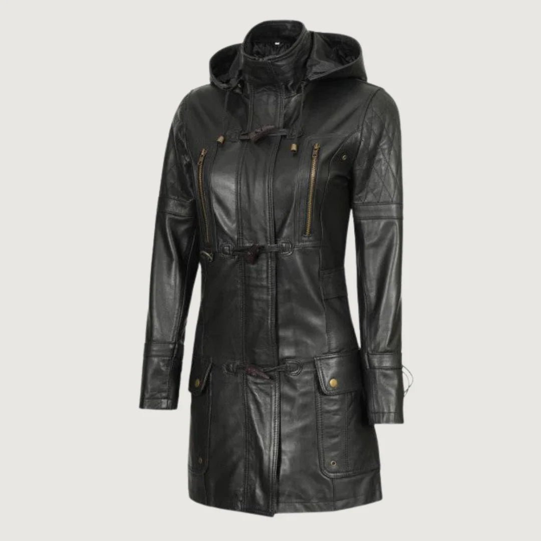 Style: Lisa Women’s Black Hooded Leather Coat