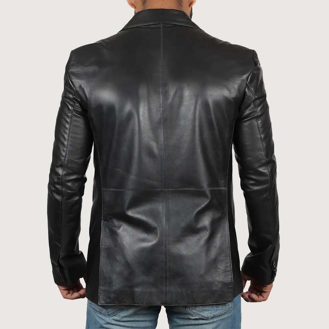 Men’s Black Leather Blazer Jacket
