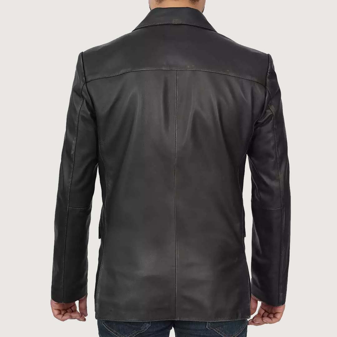 Mens Two Button Black Leather Blazer Jacket