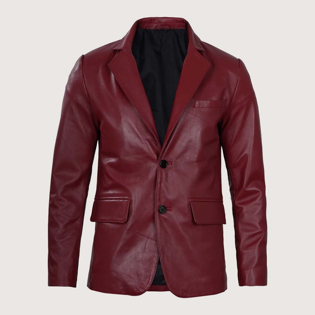 Plush Polyester Lining Maroon Leather Blazer