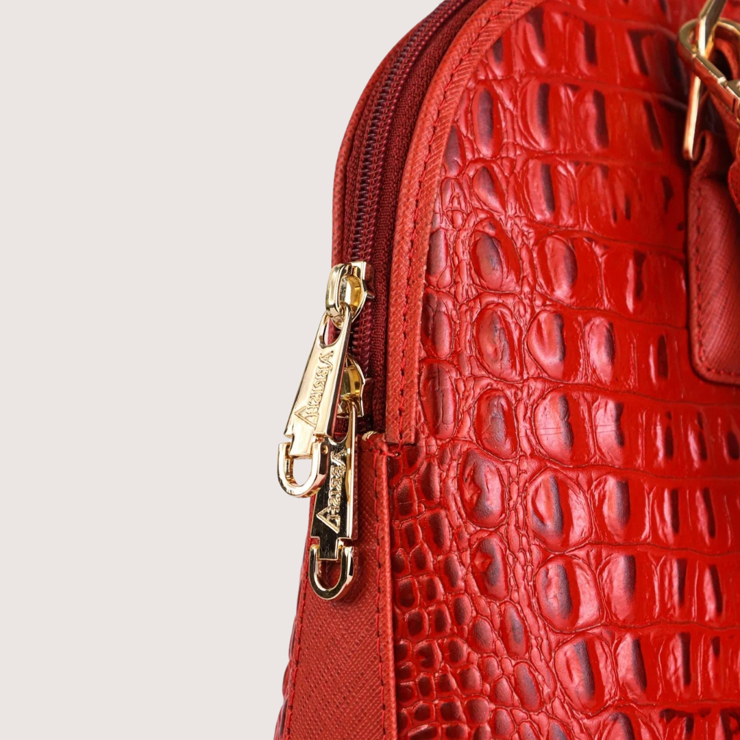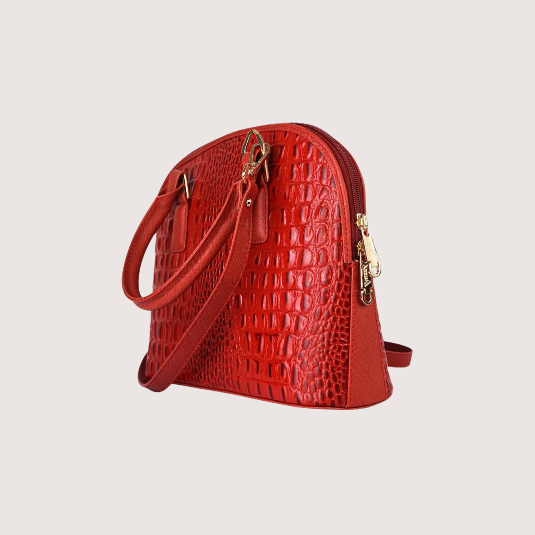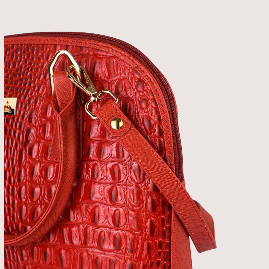 Red Noir Croc Leather Handbag