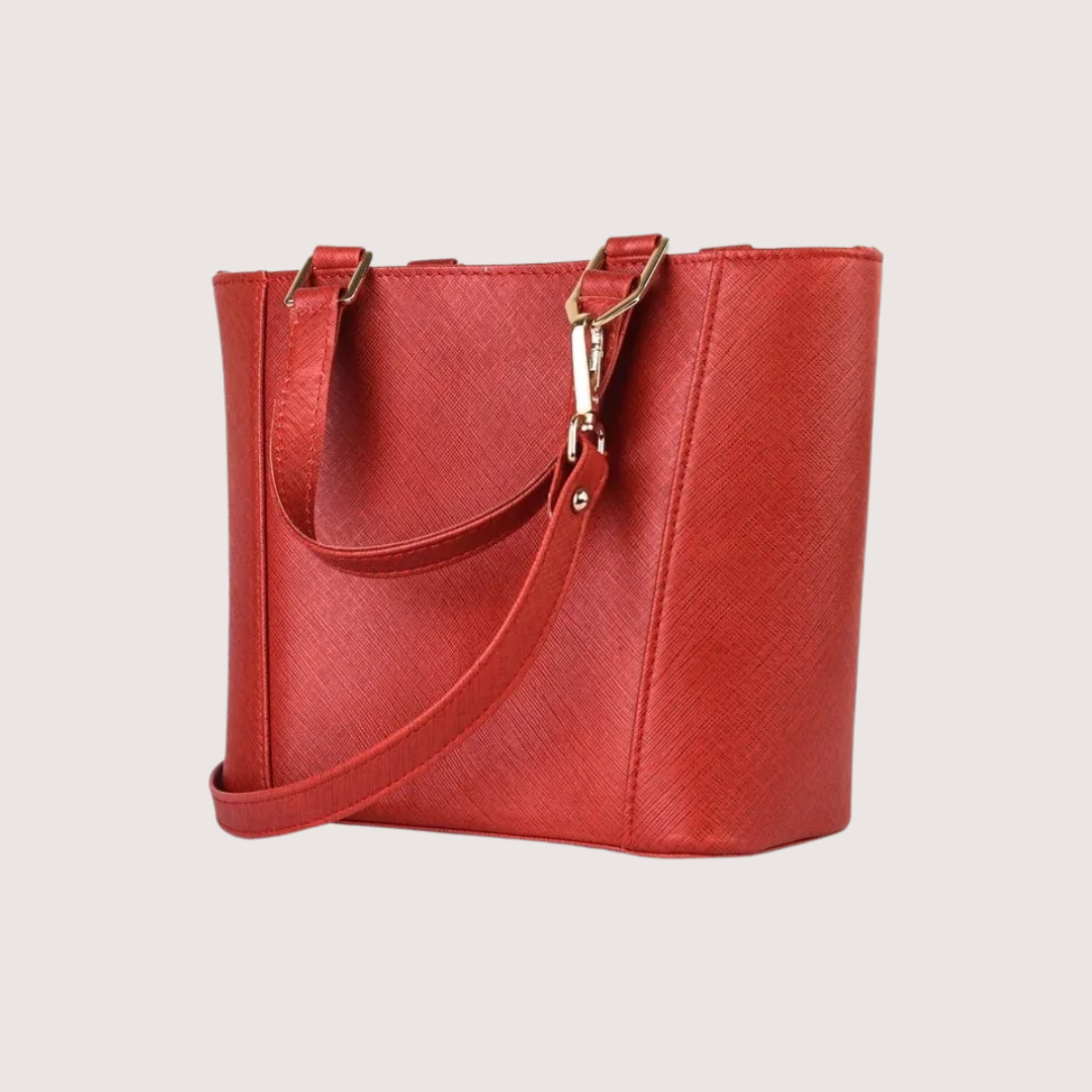 - ✔ Premium textured leather in a vibrant scarlet red