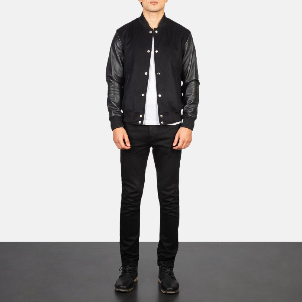 Vaxton Black Hybrid Varsity Jacket