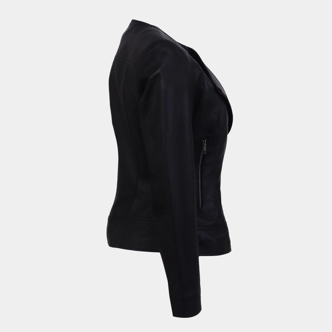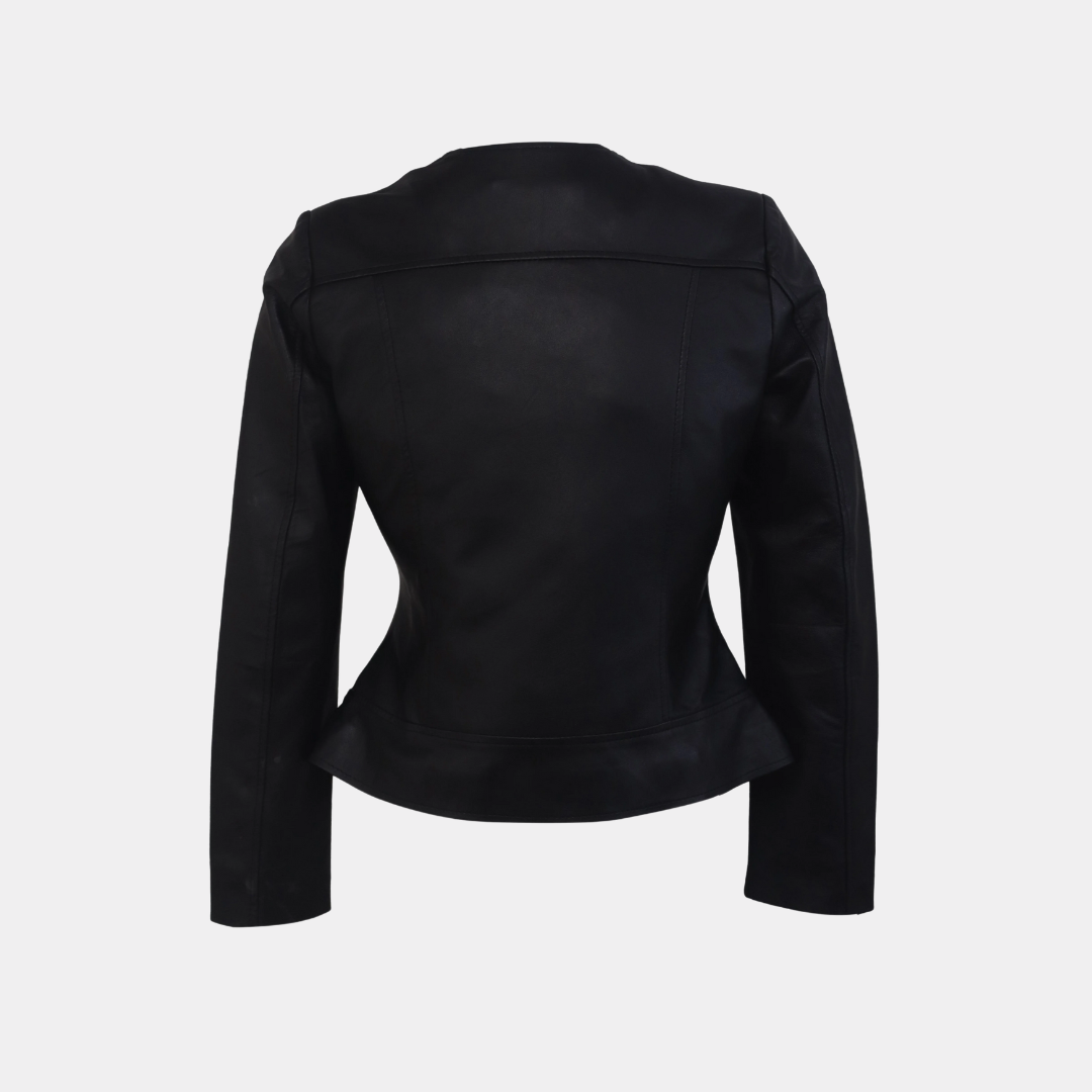 Women Round Necked Black Leather Jacket