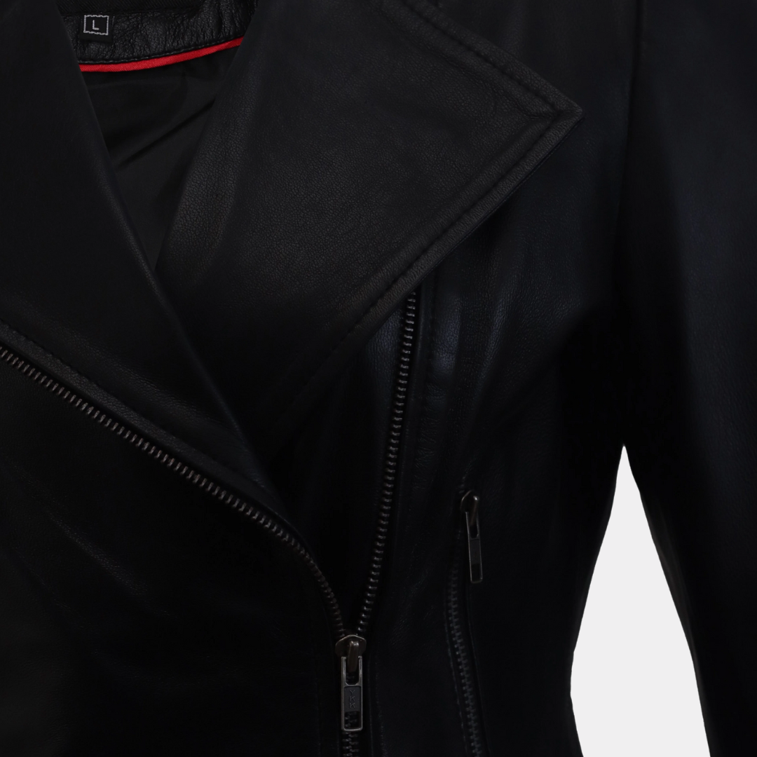 The Women’s Round Necked Black Leather Jacket is a timeless wardrobe staple that seamlessly blends style and functionality. Crafted from premium black leather, this jacket features a chic round neck design that adds a contemporary twist to a classic silhouette. Ideal for layering over both casual and dressy outfits, it’s the perfect choice for any occasion, providing warmth and style in equal measure.